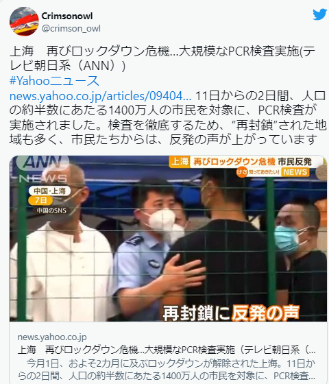 ロックダウン中の上海、色々な事故、事件が起きています。
