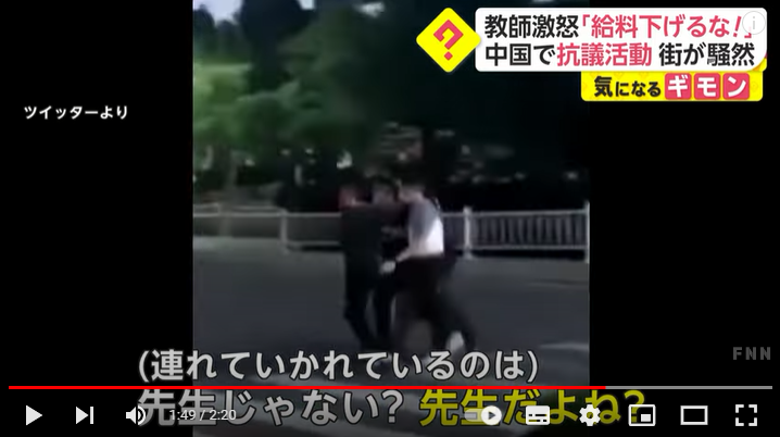 教師激怒「給料下げるな!」 中国で抗議活動 街が騒然