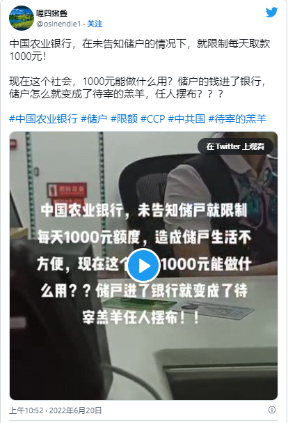 河南汝州、上蔡、土城の3つの村の銀行では、数十人の預金者がお金を引き出すことができなかった。